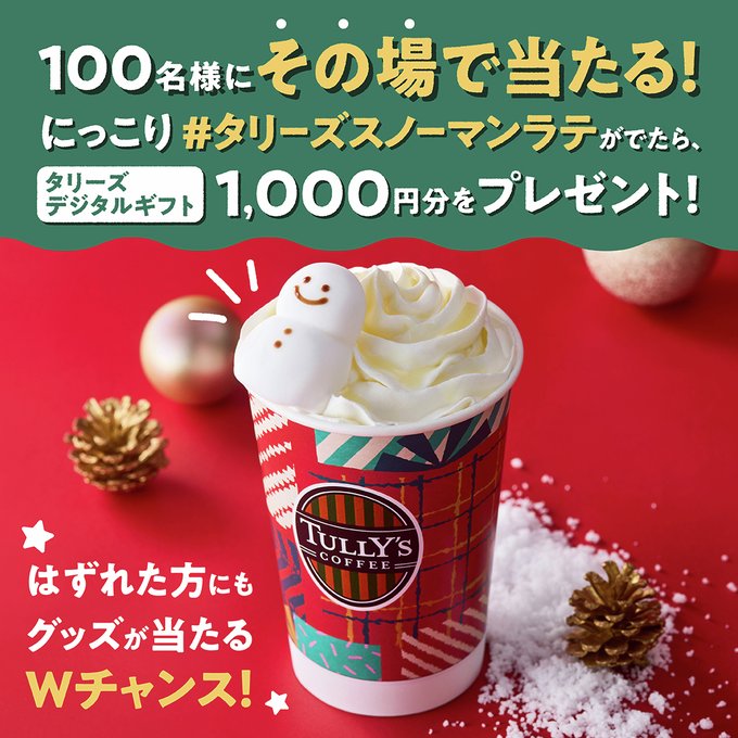 タリーズコーヒージャパン株式会社‐にっこり #タリーズスノーマンラテ キャンペーン