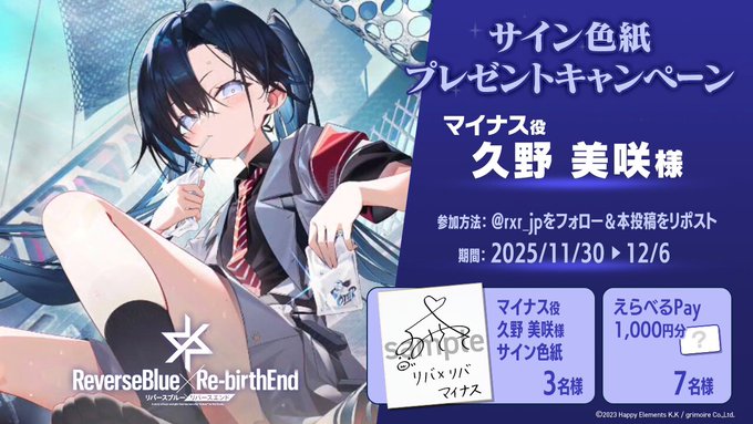 賞品:久野美咲 様のサイン色紙、えらべるPay1,000円分(合計10名様)