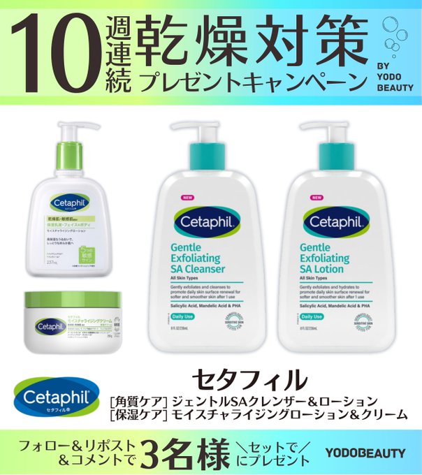 賞品:セタフィル モイスチャライジングローション&クリーム、ジェントルSA クレンザー&ローション(3名様)