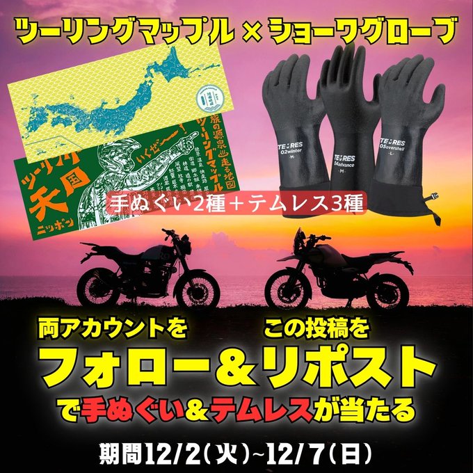 @touringmapple_s @showaglove_jp をフォロー&キャンペーン対象ポストをリポストしてご応募ください。