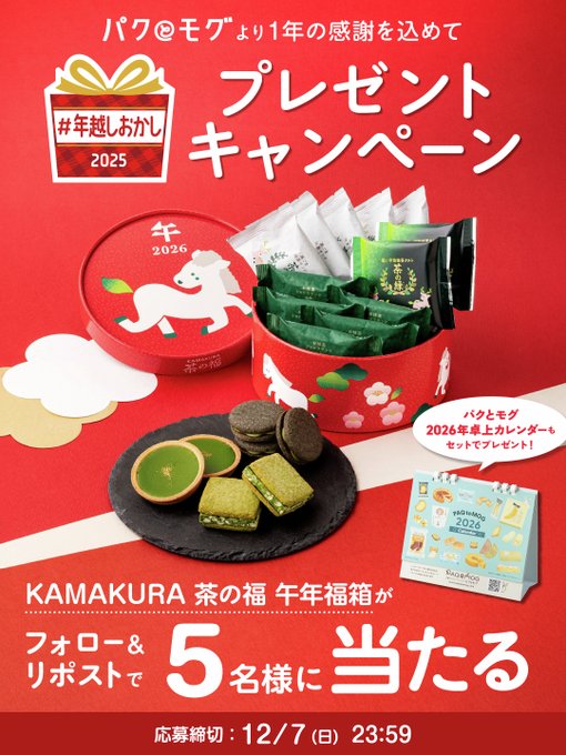 【X懸賞】鎌倉茶の福「午年福箱」とパクとモグ「2026年卓上カレンダー」を5名様にプレゼント