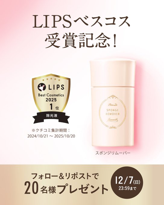 【X懸賞】パラドゥ スポンジリムーバーを20名様にプレゼント 2025.12.04パラドゥ‐フォロー&リポストキャンペーン 賞品:スポンジリムーバー(20名様) 締切:2025年12月7日(日)公式X(Twitter)アカウントをフォロー&キャンペーン対象ポストをリポストしてご応募ください。※詳細はキャンペーンページにてご確認ください。応募はこちらから