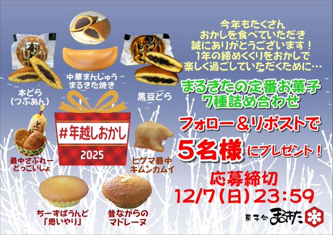 賞品:菓子処まるきた のお菓子(5名様)