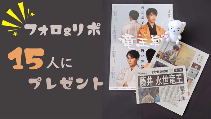 賞品:ポスターと「藤井竜王が永世竜王獲得」を伝える号外をセット(15名様)