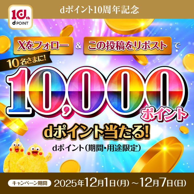 賞品:dポイント 10,000ポイント(10名様)