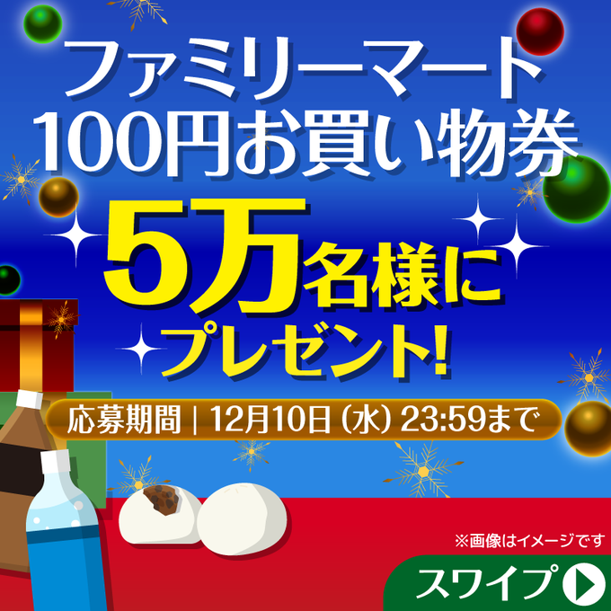 賞品:ファミリーマート100円お買い物券(50,000名様)