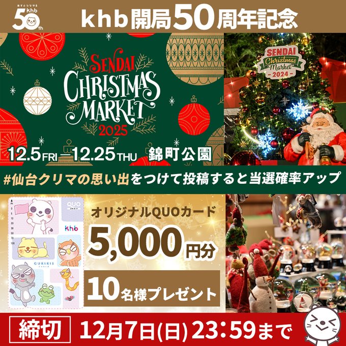 @khb_5ch @SENDAI_Xmas_mkt をフォロー&キャンペーン対象ポストをリポストしてご応募ください。