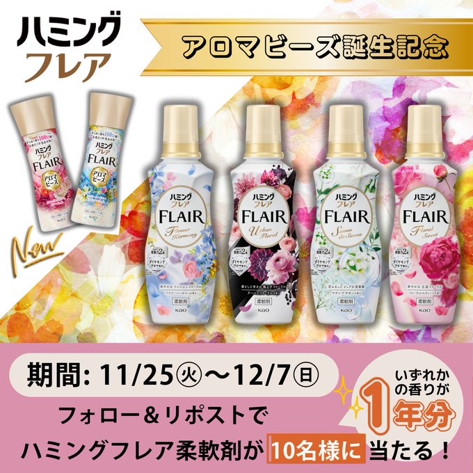 賞品:ハミングフレア柔軟剤1年分(10名様)