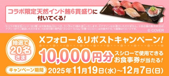 【X懸賞】スシローお食事券10,000円分を20名様にプレゼント