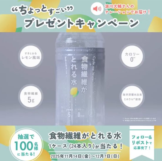 賞品:食物繊維がとれる水 1ケース(100名様)