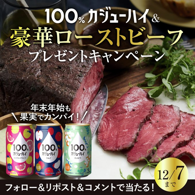【X・Instagram懸賞】三宿ローストビーフ300g&100%カジューハイ人気フレーバーを10名様にプレゼント