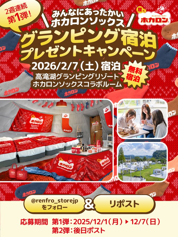 【X懸賞】ホカロンソックスコラボルームの宿泊を1組最大4名様にプレゼント
