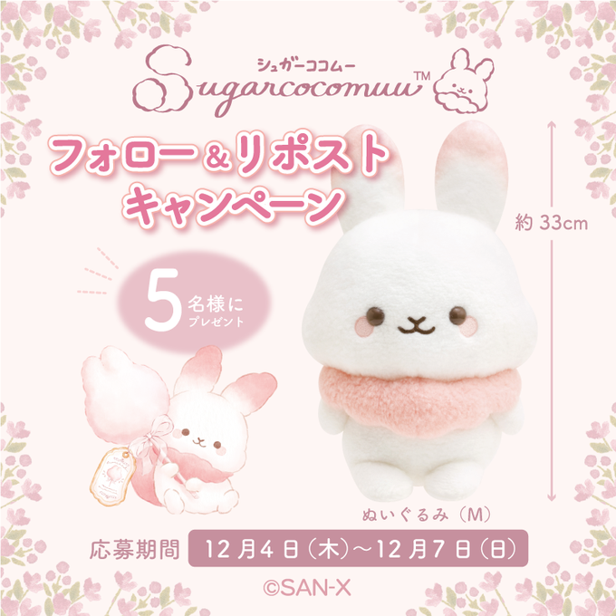 【X懸賞】ぬいぐるみ(M)を5名様にプレゼント 2025.12.06シュガーココムーのアトリエ‐フォロー&リポストキャンペーン 賞品:ぬいぐるみ(M)(5名様) 締切:2025年12月7日(日)公式X(Twitter)アカウントをフォロー&キャンペーン対象ポストをリポストしてご応募ください。※詳細はキャンペーンページにてご確認ください。応募はこちらから