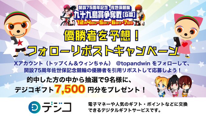 トップくん&ウィンちゃん‐開設75周年 佐世保記念優勝者予想キャンペーン