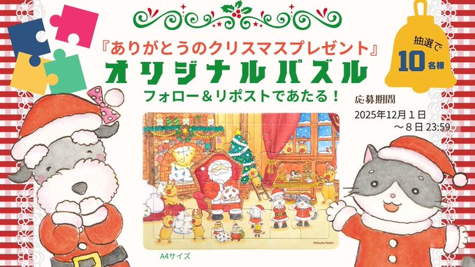 賞品:文研出版『ありがとうのクリスマスプレゼント』オリジナルパズル(10名様)