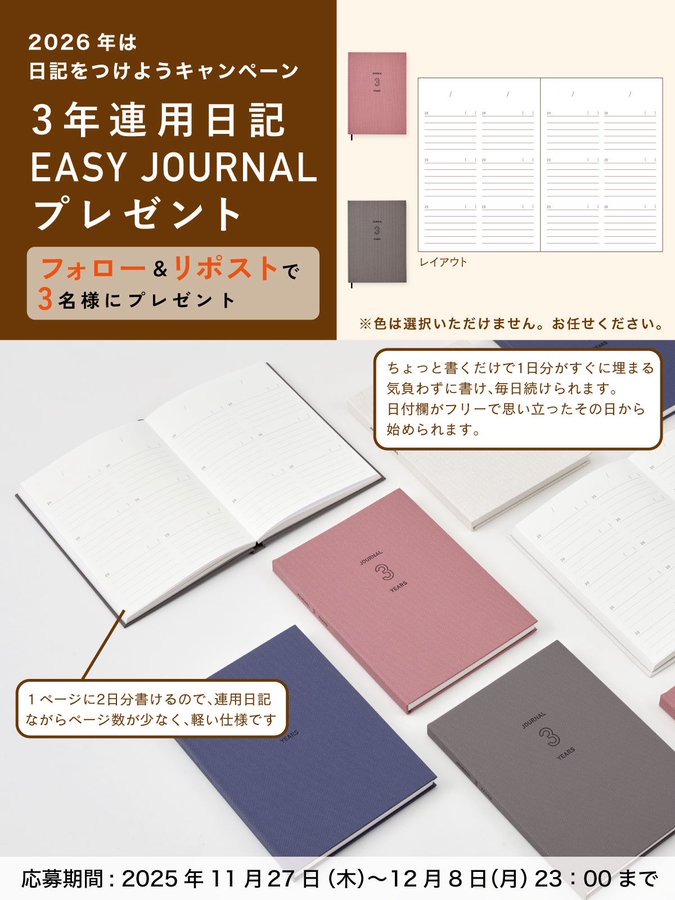 賞品:3年連用日記 EASY JOURNAL(3名様)
