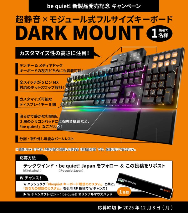 @tekwind_&@bequietJapanをフォロー&キャンペーン対象ポストをリポストしてご応募ください。