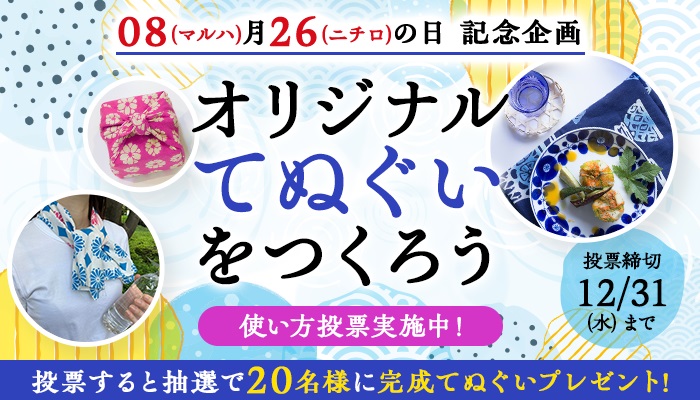 完成てぬぐいを20名様にプレゼント 2025.12.07Oishiine!!‐オリジナルてぬぐいの「使い方投票」実施中 賞品:完成てぬぐい(20名様) 締切:2025年12月31日(水)ご応募には会員登録/ログインが必要です。※詳細はキャンペーンページにてご確認ください。応募はこちらから