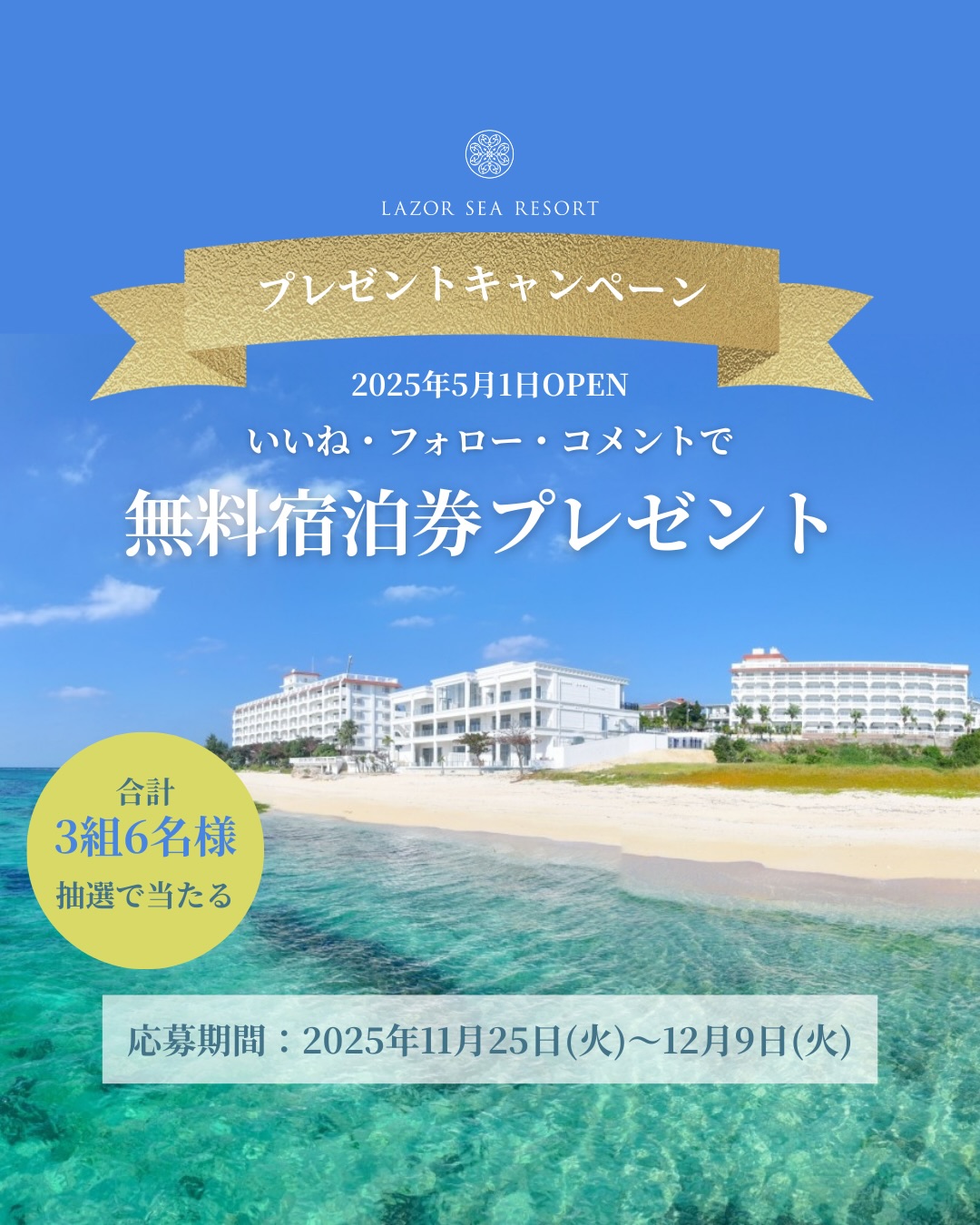 賞品:LAZOR SEA RESORT沖縄 無料宿泊券(3組6名様)