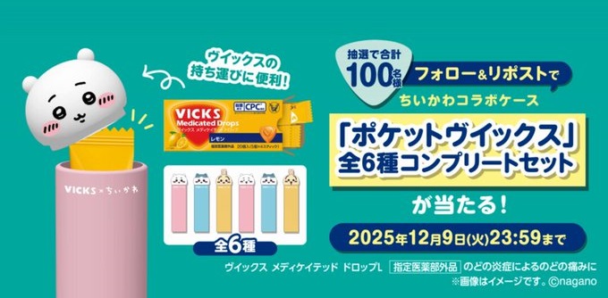 ヴイックス‐#VICKSちいかわ コラボ フォロー&リポストキャンペーン