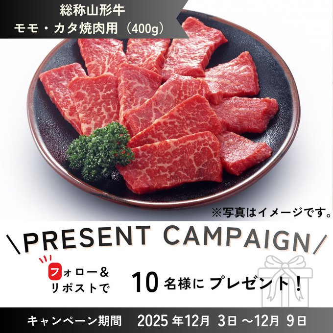 賞品:総称山形牛 モモ・カタ焼肉用(400g)(10名様)