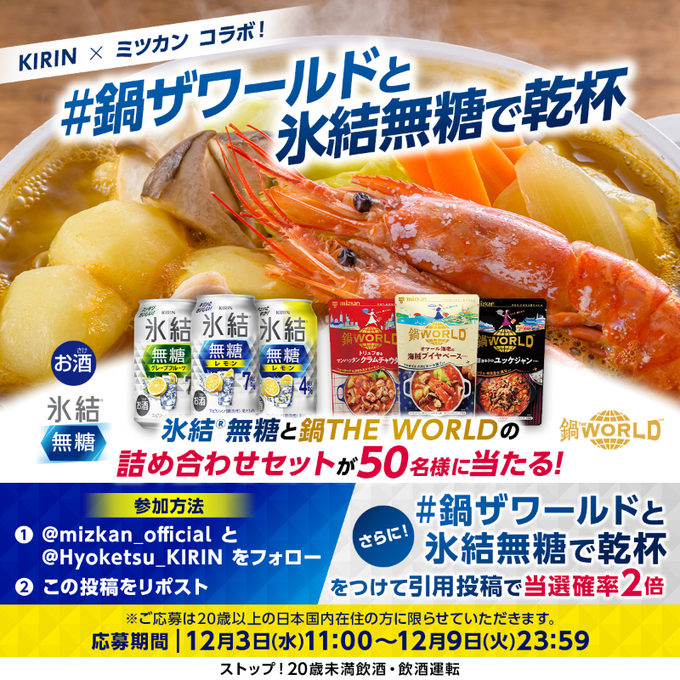 @mizkan_officialと@Hyoketsu_KIRINをフォロー&キャンペーン対象ポストをリポストしてご応募ください。