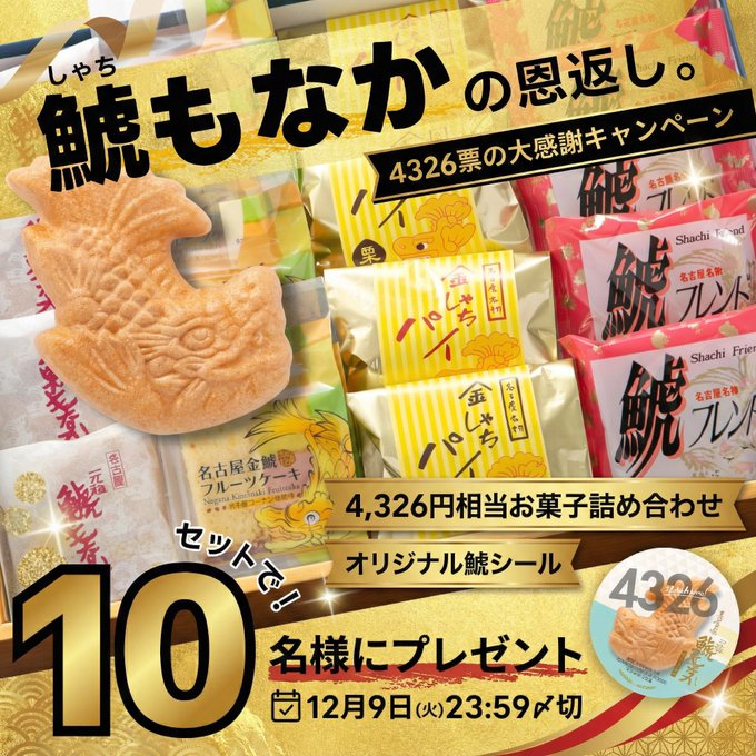 賞品:4326円相当のお菓子セット&オリジナル鯱シール(10名様)