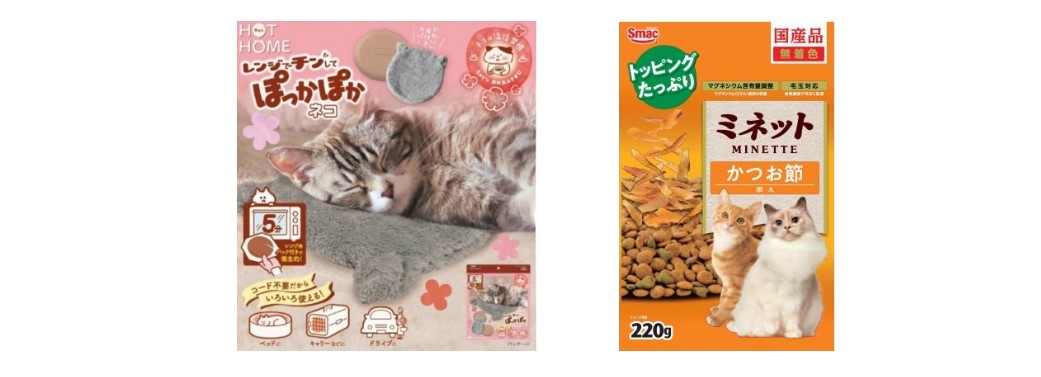 賞品:「HOT HOME レンジでチンしてぽっかぽかネコ」&猫用フード「ミネットかつお節添え220g」(10名様)