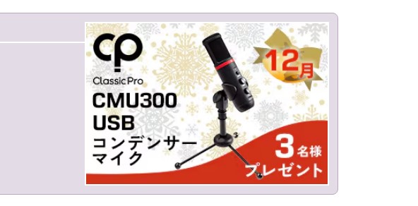 賞品:USBコンデンサーマイク CLASSIC PRO CMU300(3名様)