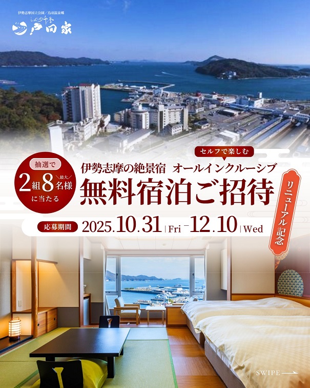 賞品:戸田家 無料宿泊ご招待(2組8名様)