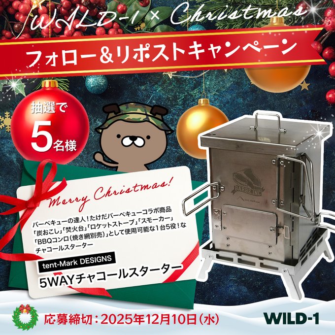 賞品:tent-Mark DESIGNS 5WAYチャコールスターター(5名様)