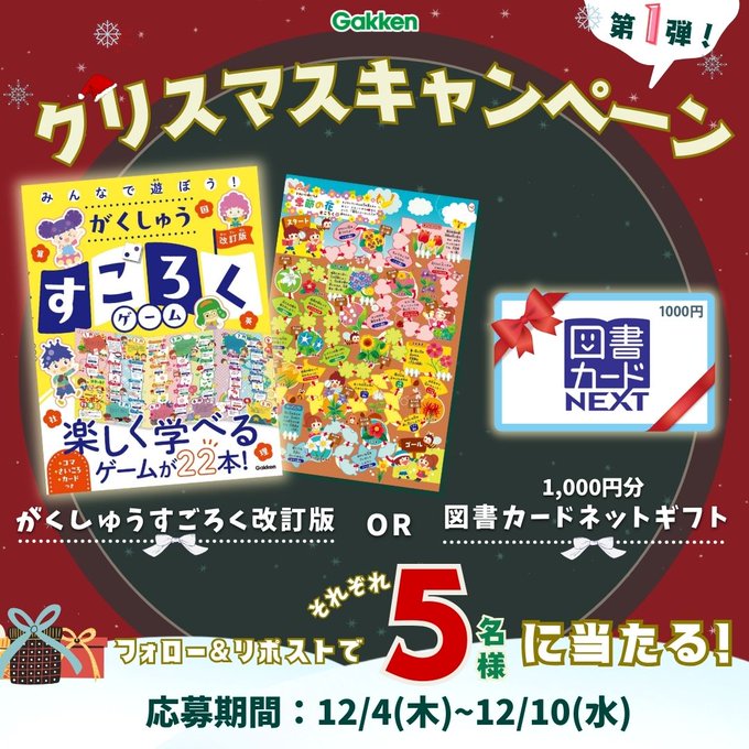 賞品:『がくしゅうすごろく 改訂版』、図書カードネットギフト1,000円分(合計10名様)