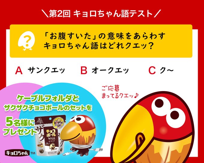 賞品:キョロちゃんケーブルフォルダとザクザクチョコボール<ピーナッツ>(5名様)