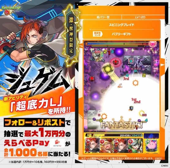 モンスターストライク‐モンストアニメ スペシャル版! ガチャ「激・獣神祭」 ジュゲム登場記念リポストキャンペーン