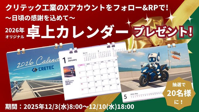 【X懸賞】クリテック工業オリジナル「2026年卓上カレンダー」を20名様にプレゼント