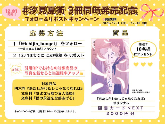 一迅社 文芸‐#汐見夏衛 3冊同時発売記念