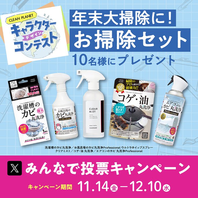 賞品:クリーンプラネットの年末大掃除5点セット(10名様)