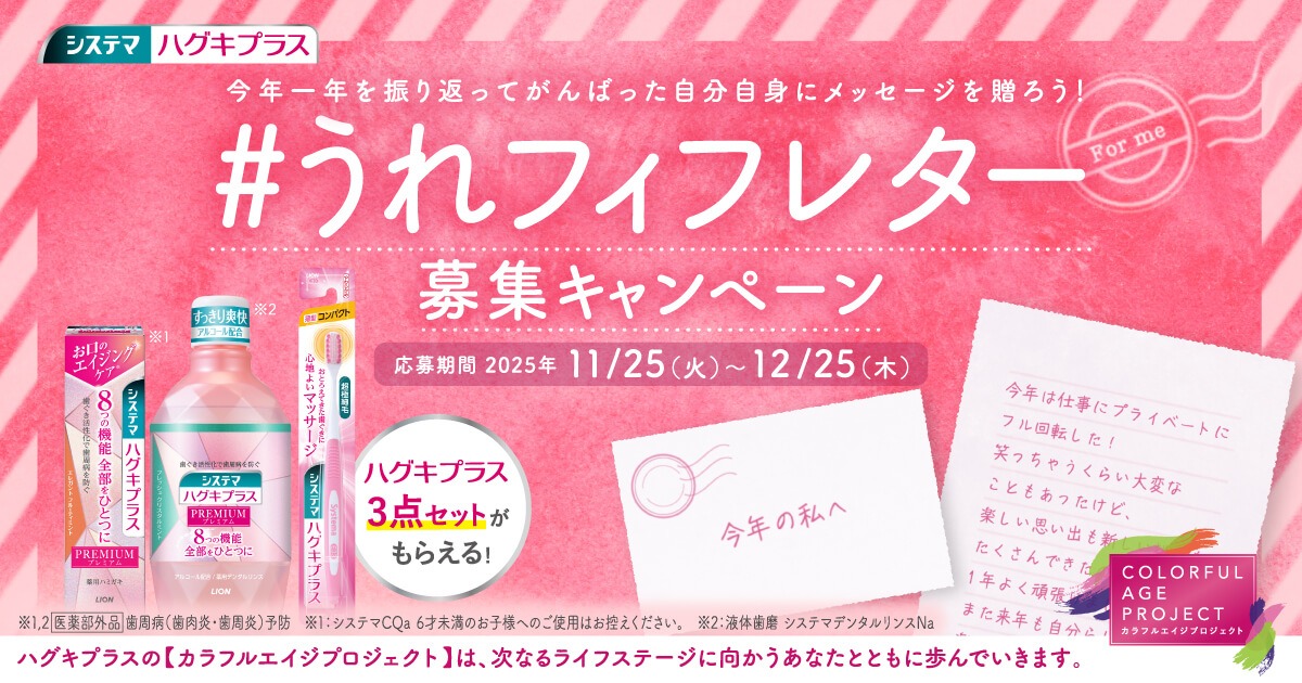 ライオン株式会社‐ハグキプラス カラフルエイジプロジェクト「うれフィフレター」募集キャンペーン