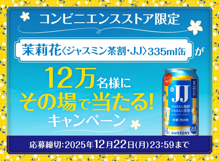 サントリー‐茉莉花〈ジャスミン茶割・JJ〉335ml缶が当たるキャンペーン