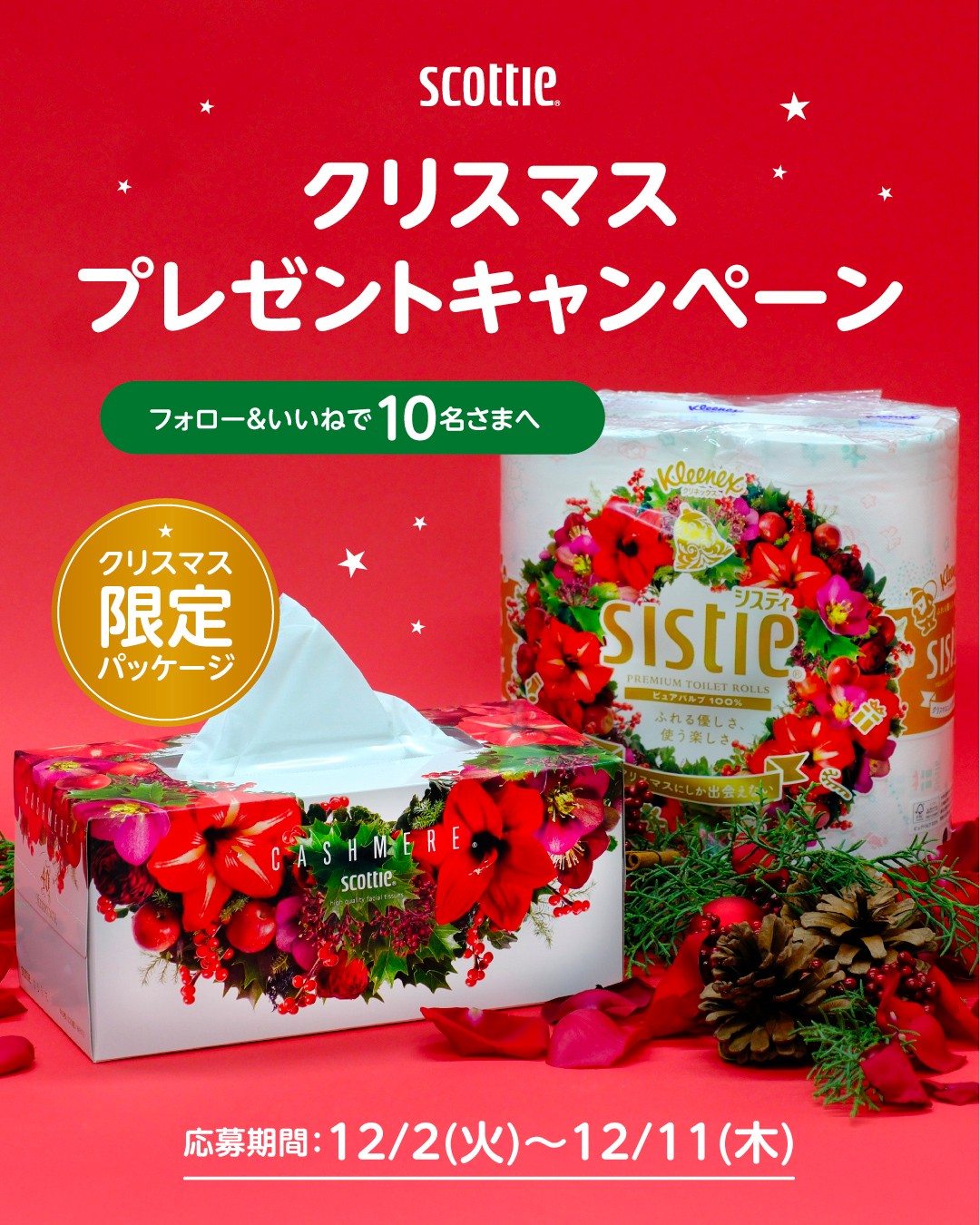 賞品:『スコッティ』『クリネックス』ブランドのクリスマスモチーフをデザインした限定セット(10名様)