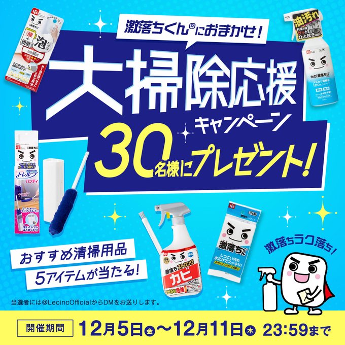 賞品:「激落ちくん®」を始めとした大掃除にオススメの清掃用品(30名様)
