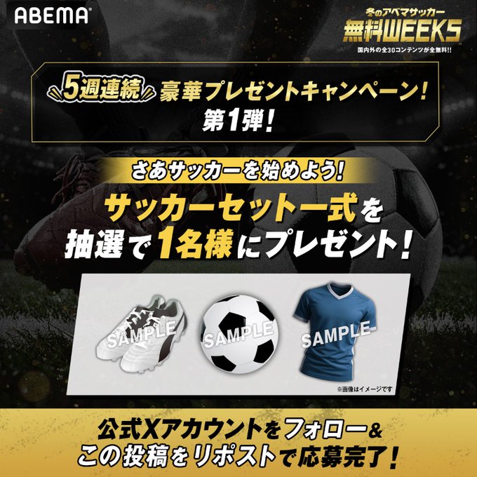@ABEMA @ABEMA_soccer をフォロー&キャンペーン対象ポストをリポストしてご応募ください。