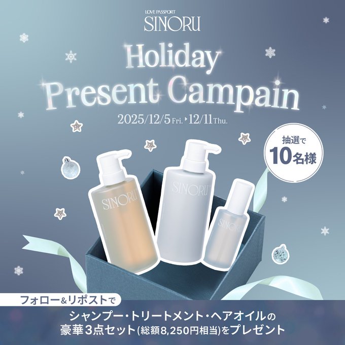 賞品:シャンプー・トリートメント・ヘアオイル(現品)の3点セット(10名様)