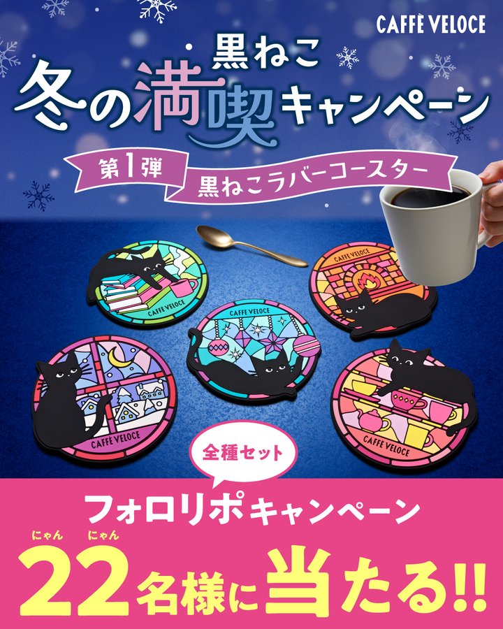 賞品:黒ねこラバーコースター全種セット(22名様)