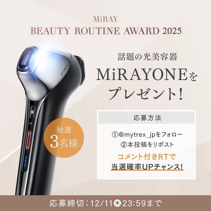 賞品:MYTREX オールインワン光美顔器 MiRAY ONE(3名様)