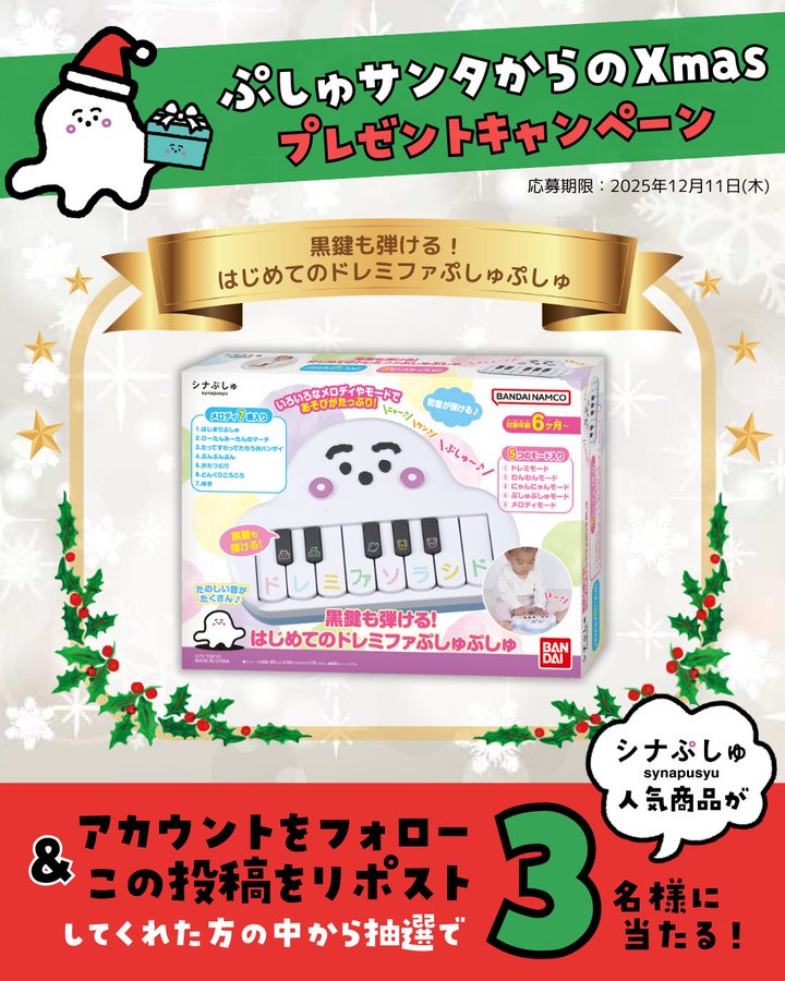 賞品:シナぷしゅ 黒鍵も弾ける!はじめてのドレミファぷしゅぷしゅ(3名様)
