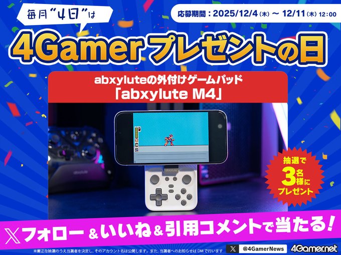 賞品:外付けゲームパッド「abxylute M4」(3名様)