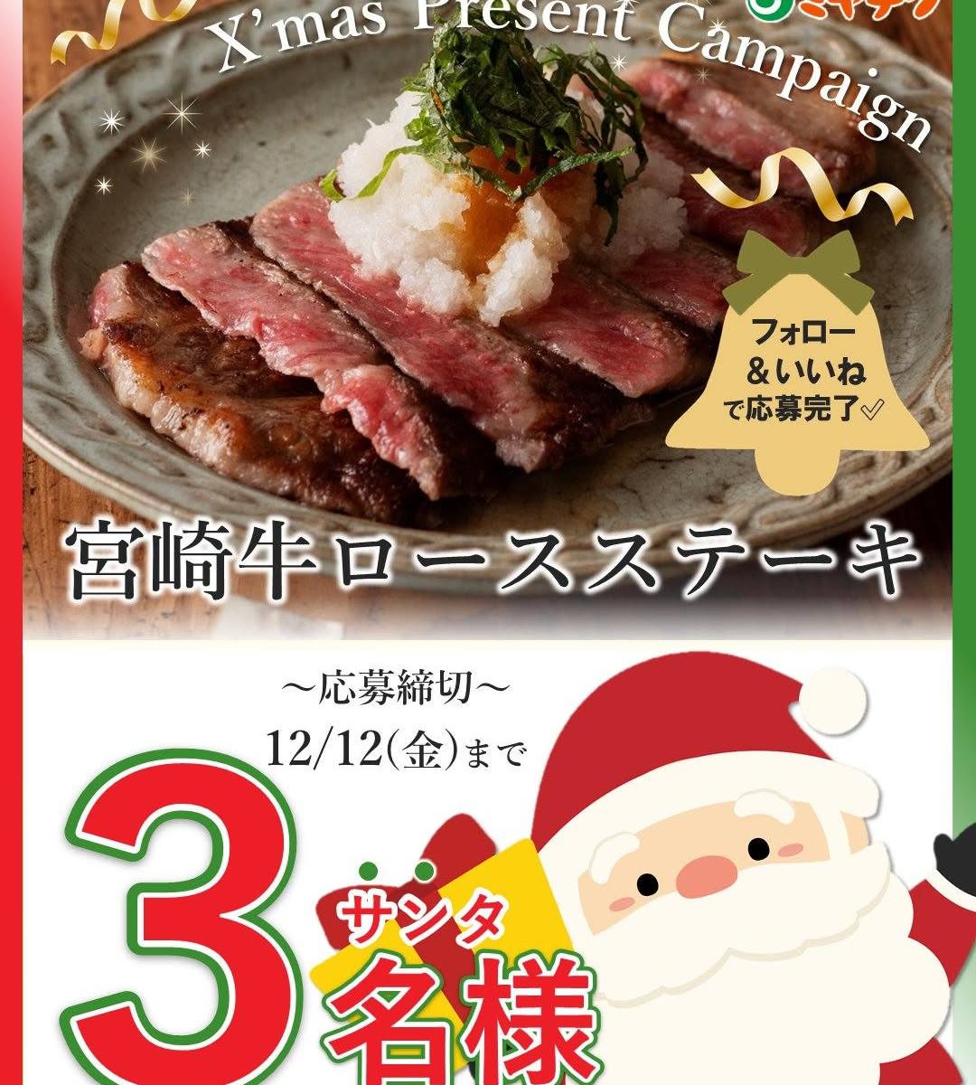 賞品:宮崎牛ロースステーキ2枚500g(3名様)