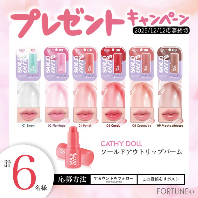 賞品:キャシードール ソールドアウトリップバーム(6名様)