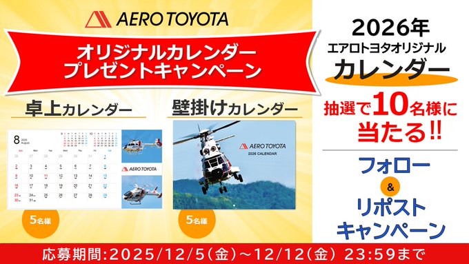 賞品:エアロトヨタ のオリジナルカレンダー(10名様)